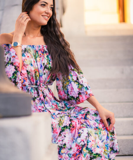Easy. Light. Airy. Naturally flows. This dress will take You anywhere, anytime. For days when easy and effortless are Your priority. Dress with belt and off shoulder effect.