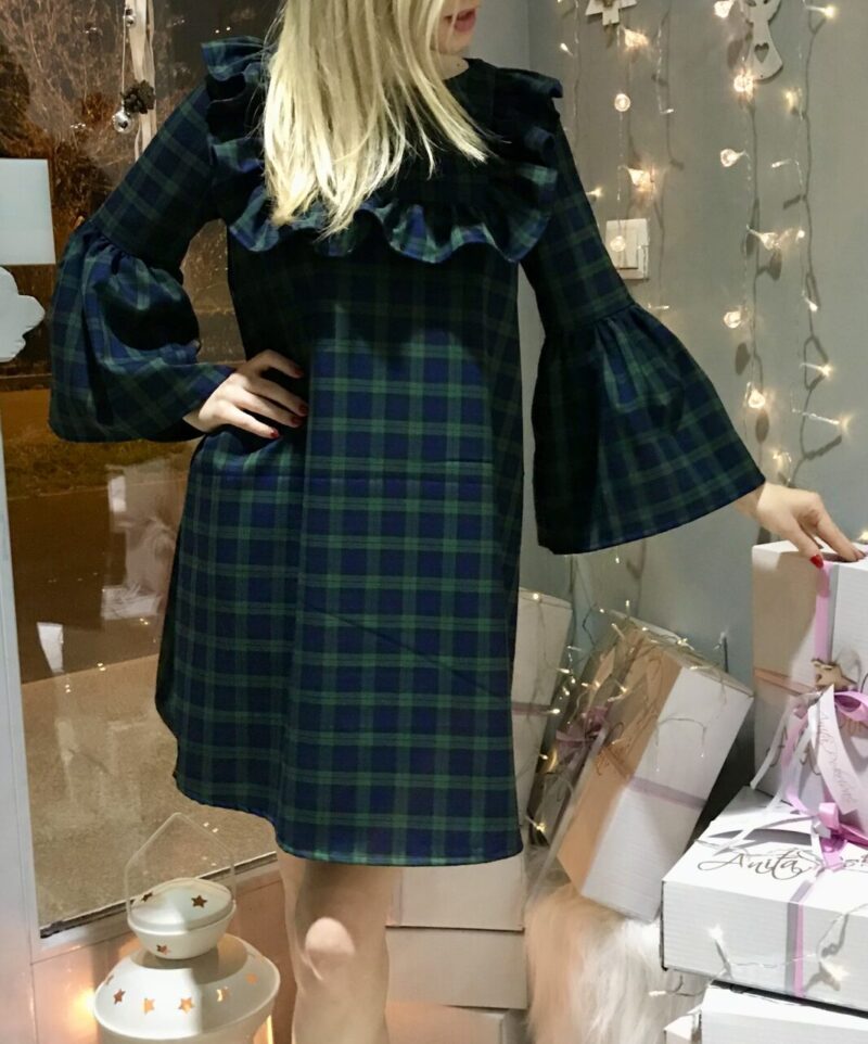 dress Christmas is designed with charming ruffles adorning the sleeves and upper bodice. Comfortable and so easy to wear. Perfect for occasions and holiday season.