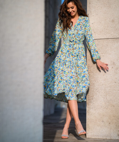 Dress ELLA is airy, light and has amazing skirt flounces. Upper part of dress is wrapped. Wide skirt and belt that comes with, made it unique. It's an ideal choice for any kind of celebrations.