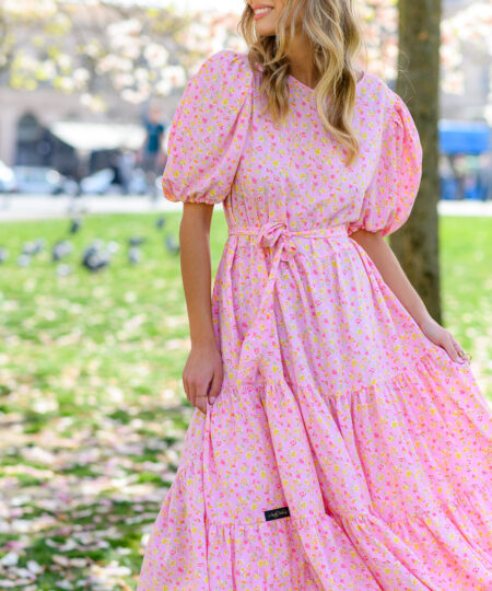 Dress LARA is airy, light and has amazing skirt flounces. Puff sleeves, wide skirt and belt that comes with, made it unique.