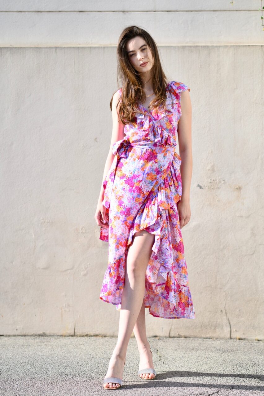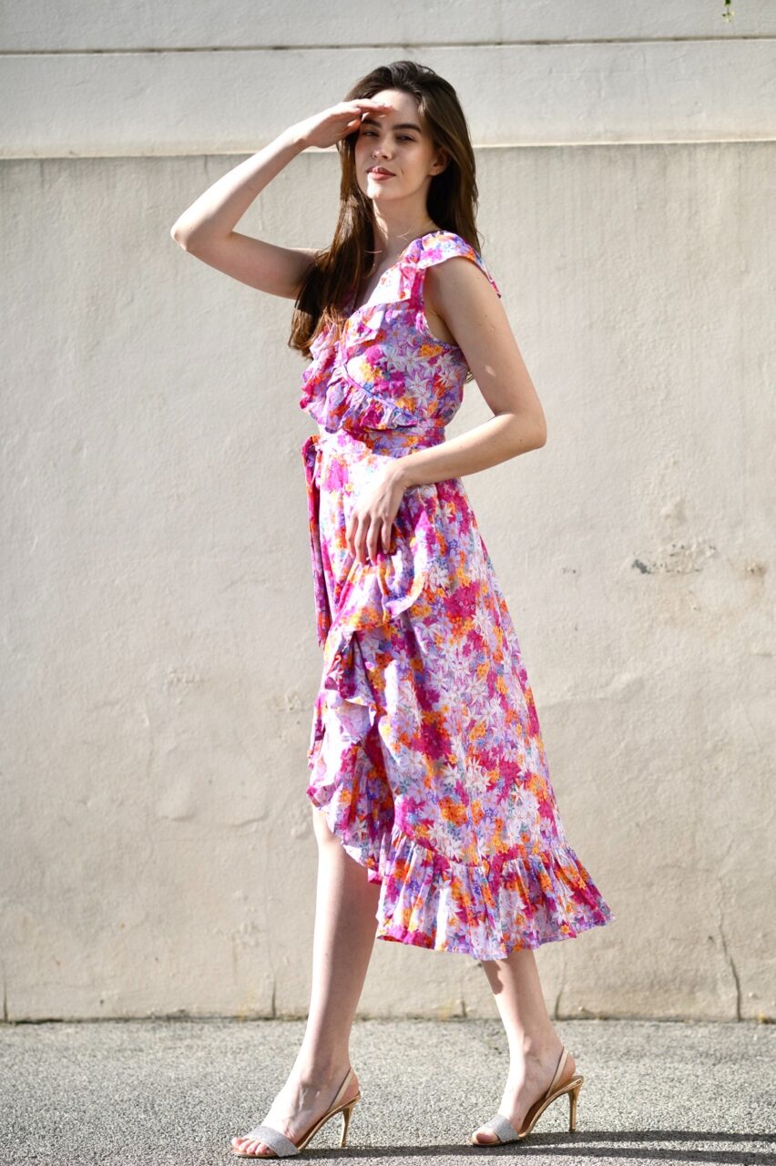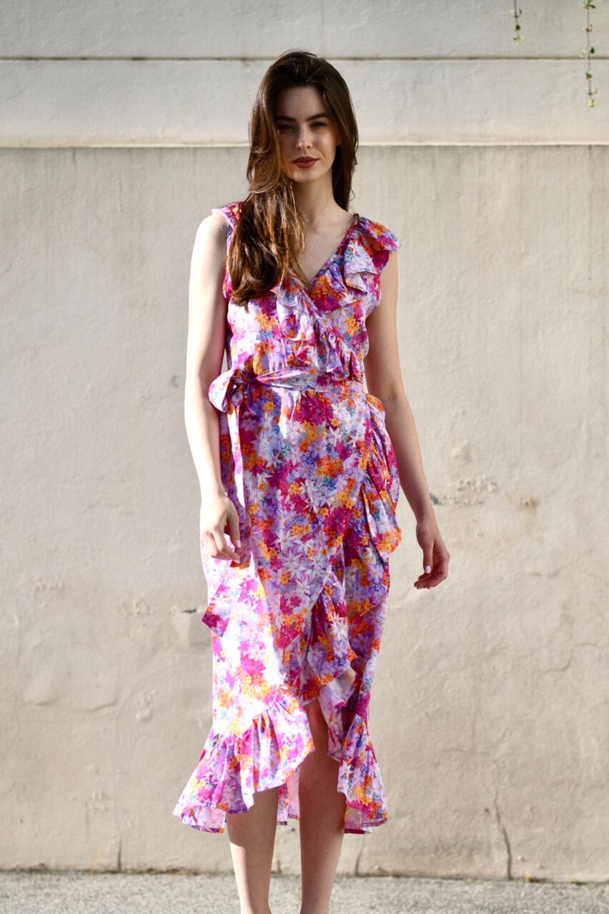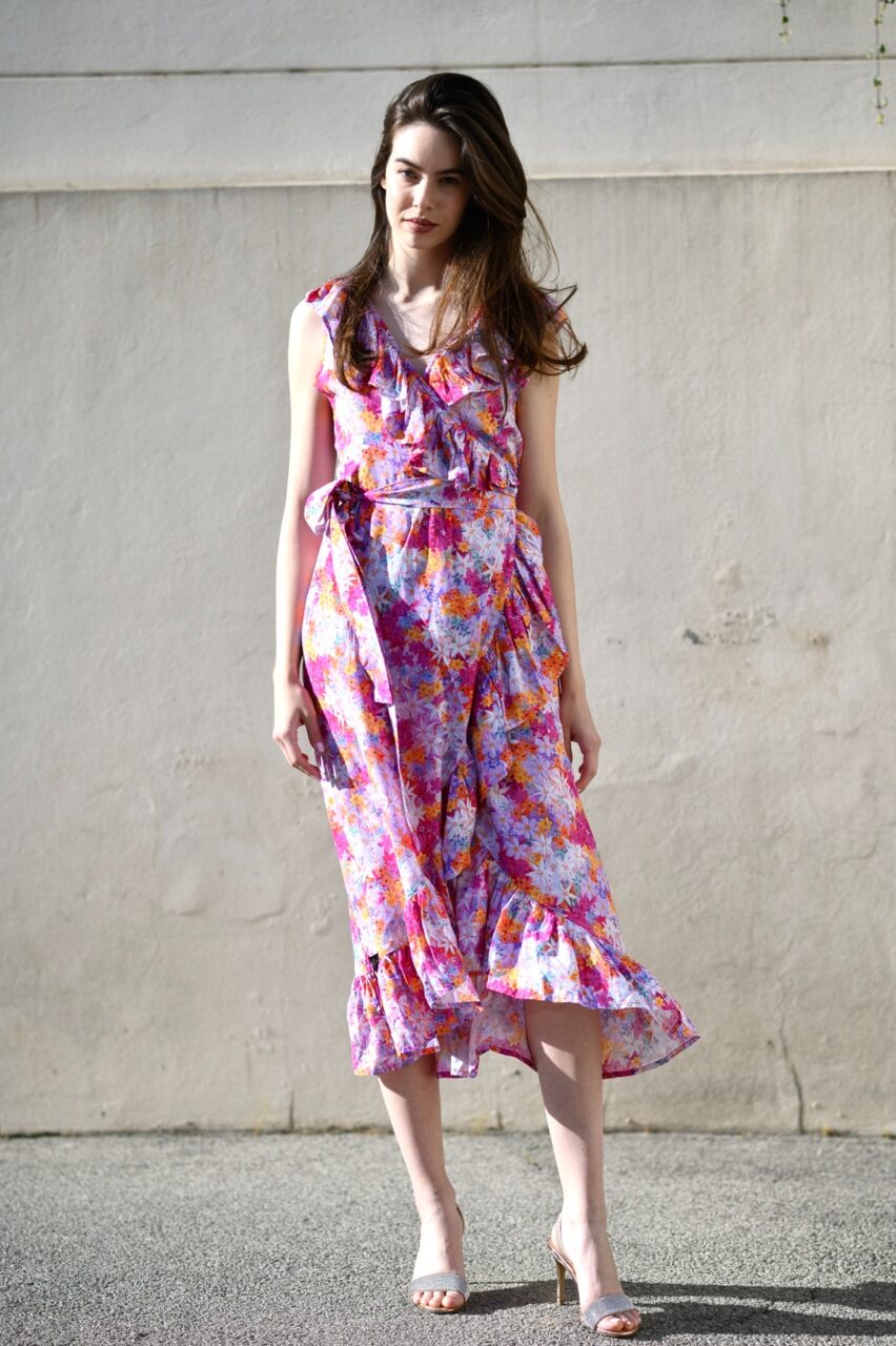 dress miley midi is chic and elegant wrapped dress with flounce details. Comfortable and so easy to wear, and at the same time so feminine. perfect choice for Summer weddings and celebrations.