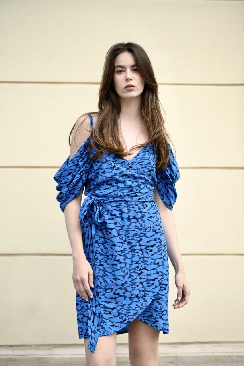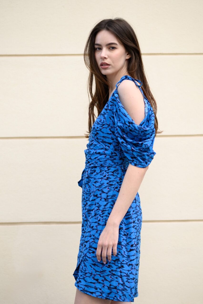 The NEVA Dress features a flattering wrap silhouette that ties at the waist for the perfect fit. Designed with delicate spaghetti straps and soft off-the-shoulder sleeves, it’s the ultimate summer piece – light, airy, and effortlessly elegant. Whether you’re strolling the coast, grabbing a sunset drink, or heading to a garden party, Neva is your go-to dress for warm days and breezy nights.