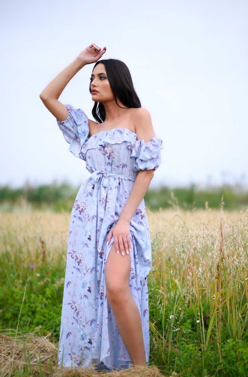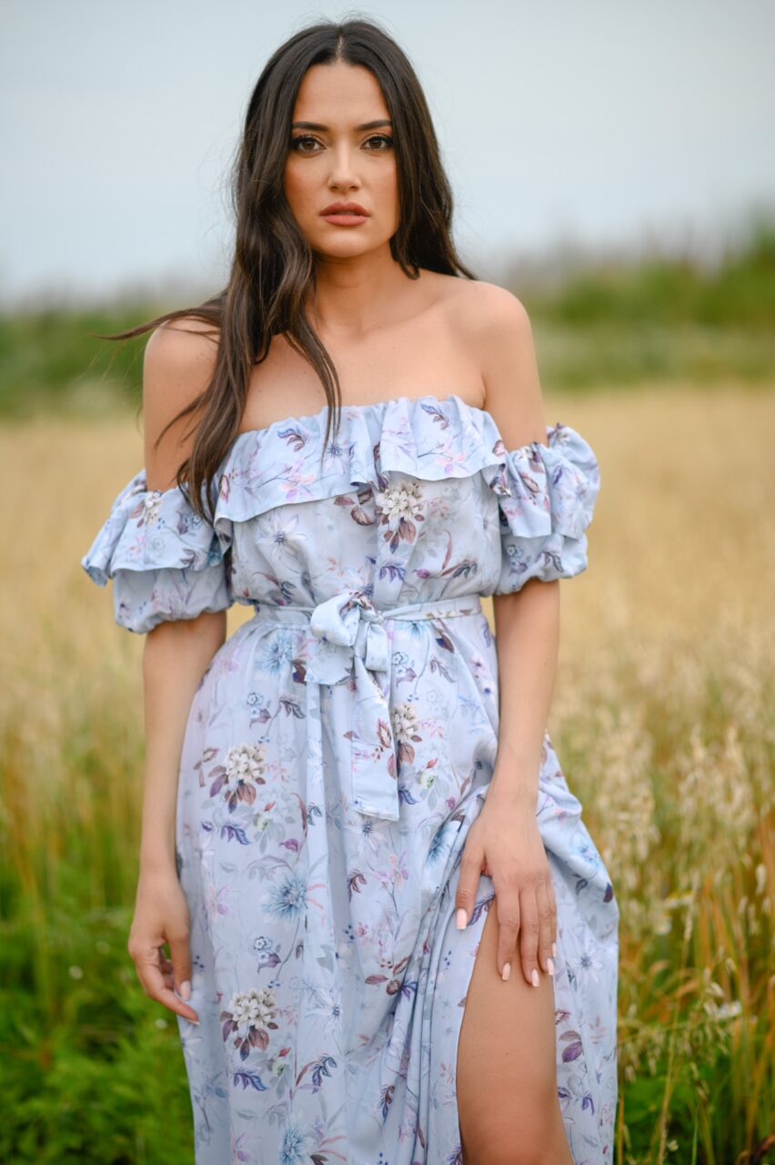 Easy. Light. Airy. Naturally flows. This dress will take You anywhere, anytime. For days when easy and effortless are Your priority. Dress with flounce details and off shoulder effect, also has a slit. romantic and dreamy, perfect for Summer. belt comes with.