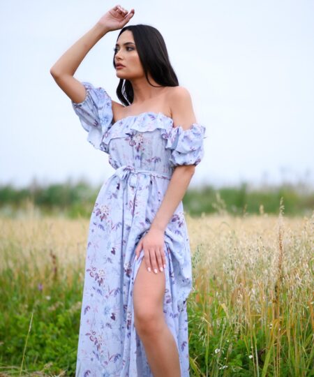 Easy. Light. Airy. Naturally flows. This dress will take You anywhere, anytime. For days when easy and effortless are Your priority. Dress with flounce details and off shoulder effect, also has a slit. romantic and dreamy, perfect for Summer. belt comes with.