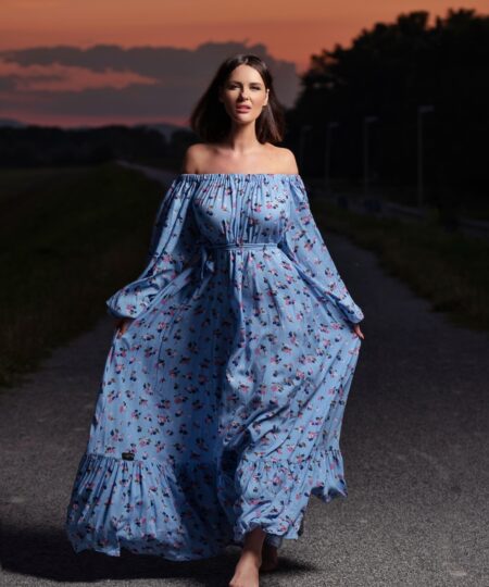 Easy. Light. Airy. Naturally flows. This dress will take You anywhere, anytime. For days when easy and effortless are Your priority. Dress with WOW effect with oversized sleeves and off shoulder variant.