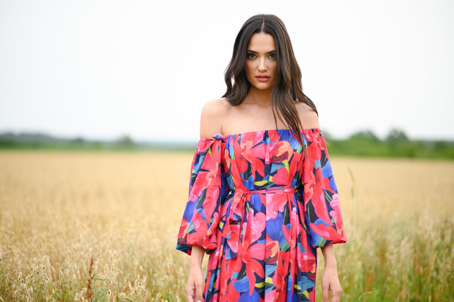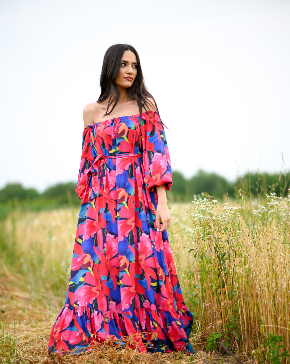 Easy. Light. Airy. Naturally flows. This dress will take You anywhere, anytime. For days when easy and effortless are Your priority. Dress with WOW effect with oversized sleeves and off shoulder variant. belt comes with dress.