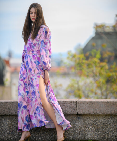 DRESS Emily is made from high quality radiance. The upper part of the dress is wrapped and has big puf sleeves.