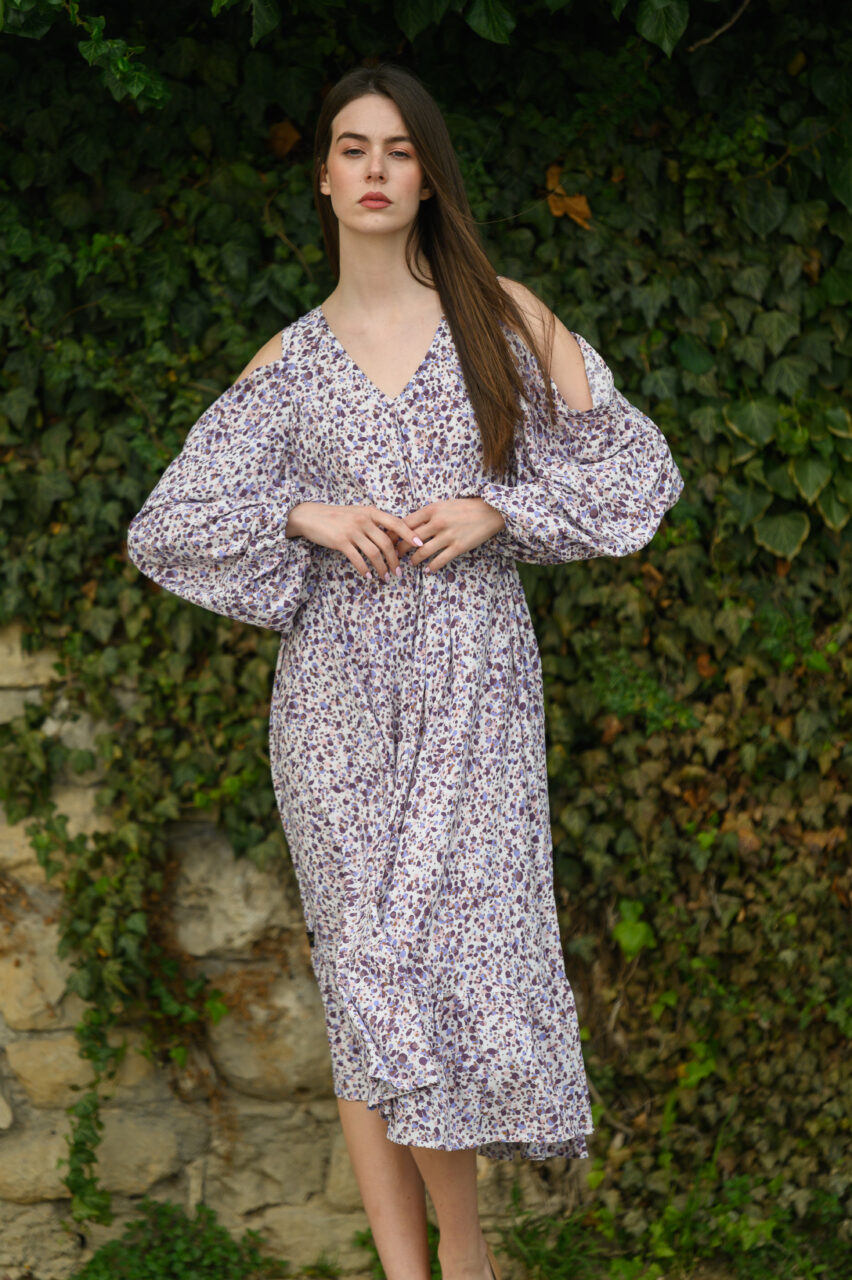 model is 177cm high and wears size UNI, length of dress is midi 115 cm.