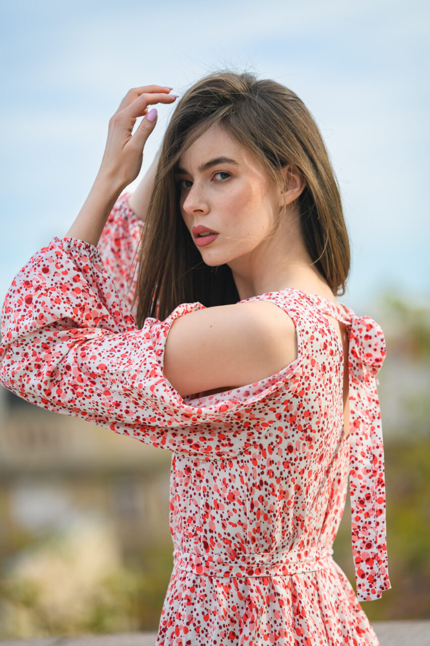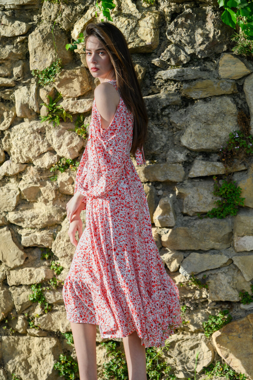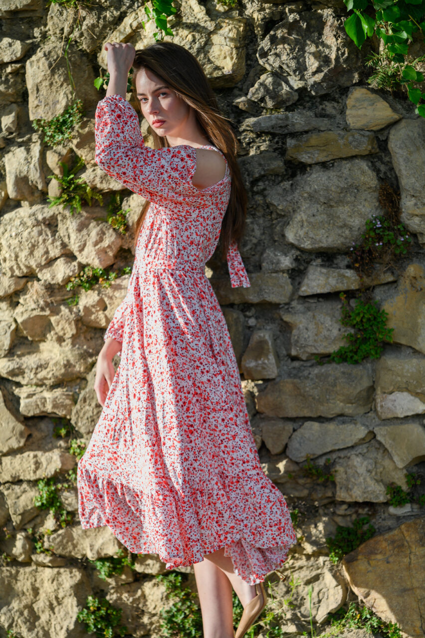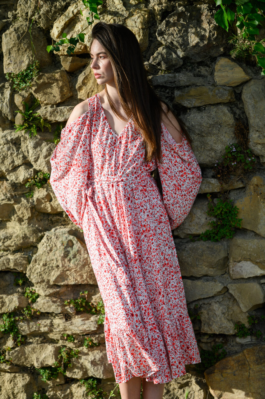 model is 177cm high and wears size UNI, length of dress is midi 115 cm.
