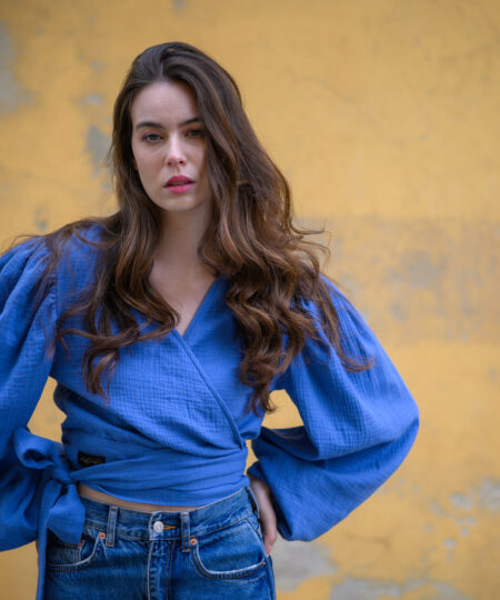 SHIRT is made from high quality double gauze cotton (OEKO-TEX/STANDARD 100). SHIRT is airy, light, oversized and has big puf sleeves. Wrap design with tie around waist made it unique. It pairs perfectly with jeans, skirts or shorts.