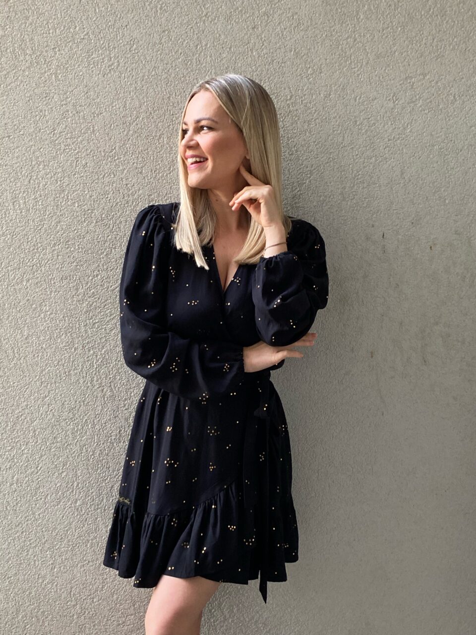 dress DONNA is chic and elegant wrapped short dress with flounce details. Comfortable and so easy to wear. Little black dress that has to be in Your closet!